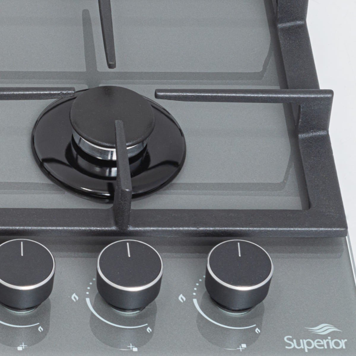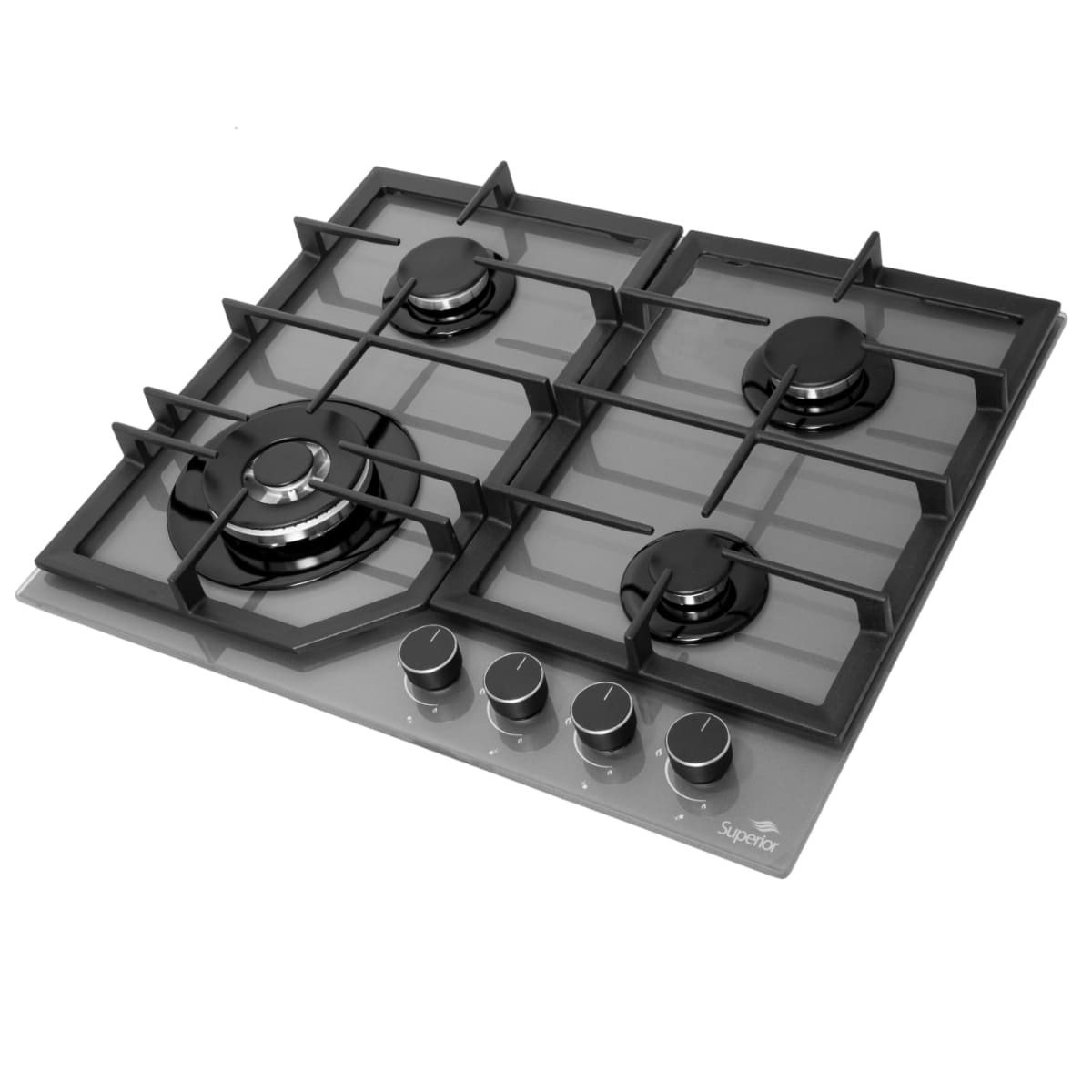 Cubierta Empotrable Superior 4 puestos 60 cm Mando Frontal Gris CV 8031-1G con vidrio templado.