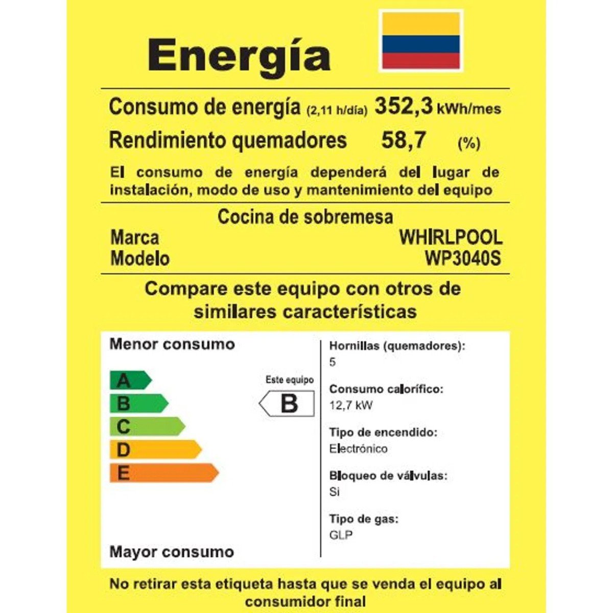 Cubierta Whirlpool Acero Inoxidable 5 Ptos – WP3040S Cubierta a gas 5 puestos en Acero Inoxidable, con parrillas en hierro fundido que brindaràn estabilidad a los recipientes y permitirá tener una mayor superficie de cocinado. Sus perillas cuentan con encendido electrònico, fàciles y pràcticas de manejar. Su adaptador para Wok, ideal para que puedas preparar tus recetas favoritas en Wok y disfrutes resultados deliciosos todo el tiempo. Compra online segura en Grupo Mansión. Encuentra más productos relacionados en la categoría Cubiertas de Empotrar Para conocer más sobre el producto haz clic aquí