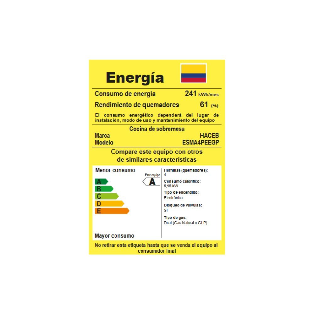 Estufa de Sobremesa Haceb Avellana V Gas Natural 4 Puestos Plata EM AVELLANA V PL