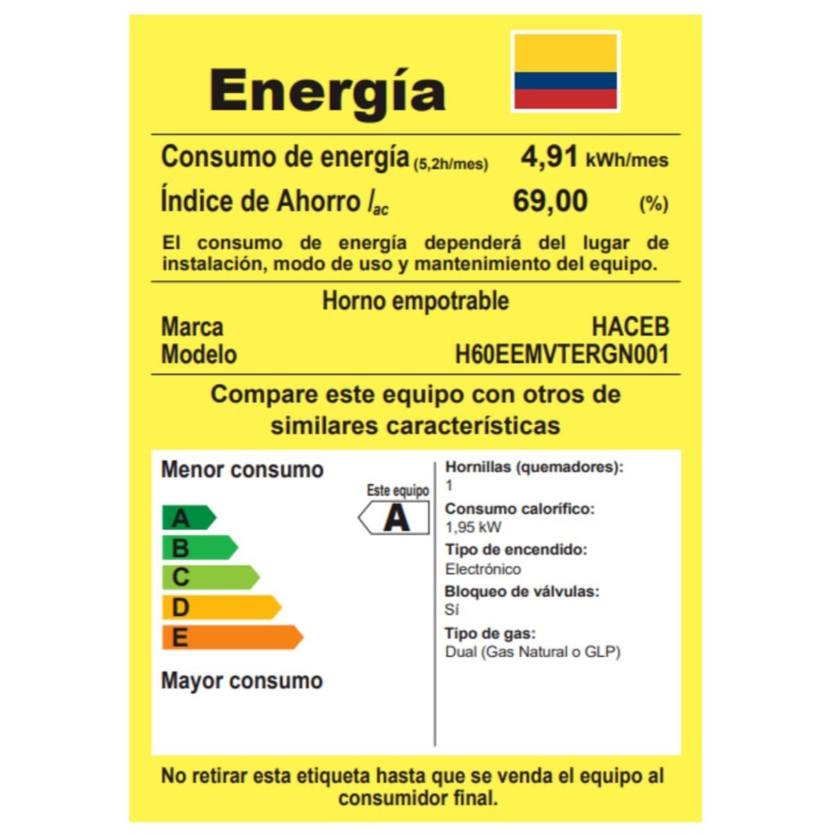 Sé el primero en valorar “Horno Empotrable Haceb Mixto Tofu 60 cm Negro Gas Natural 120V HX TOFU 60 NE GN”