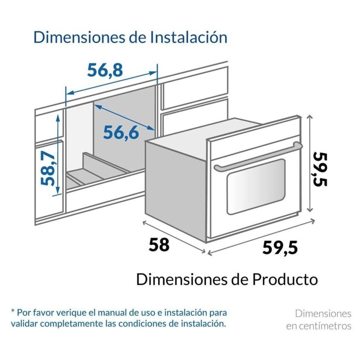 | Características Adicionales | Iluminación interior – Parrilla cromada de seguridad – Vidrio interno – Doble vidrio de seguridad en la puerta – Timer electromecánico programable |