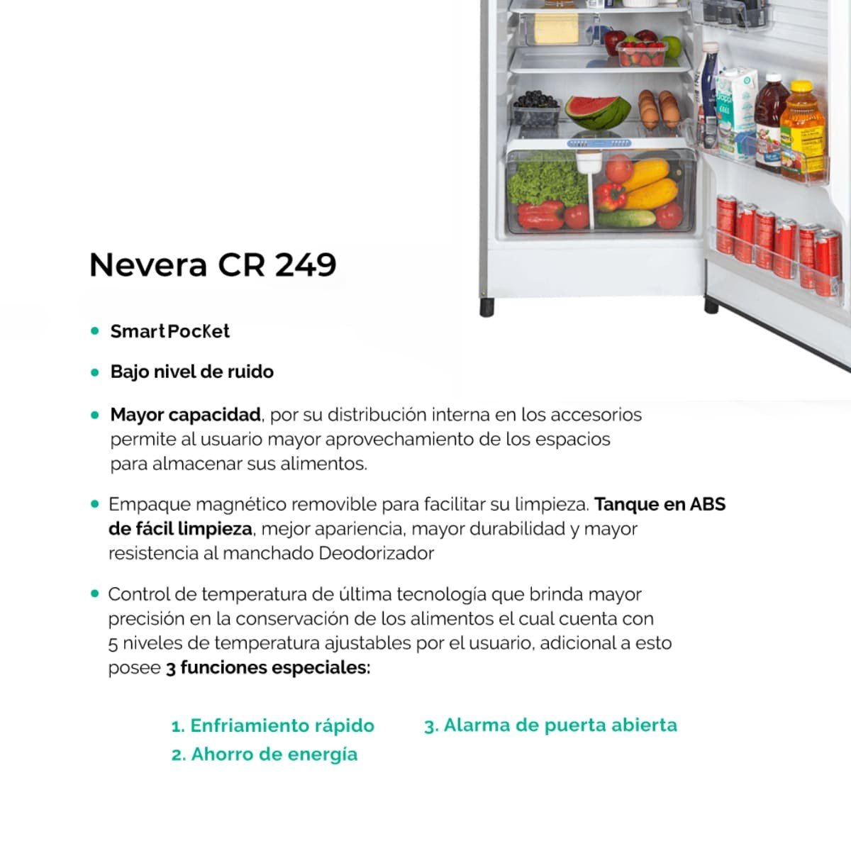 El mundo necesita que seamos responsables, necesita que evolucionemos, por eso la nueva serie de refrigeración Lúmina de Challenger lo hizo igual que tú. Su diseño moderno, elegante y sobrio proporciona una atractiva apariencia y mayor espacio interno. Lúmina se adapta a todas las necesidades, con la nevera CR249 tienes una nevera No Frost de 231 litros especial para pequeños espacios aprovechando al máximo todas las carácterísticas destacadas de una nevera pensada para ti.