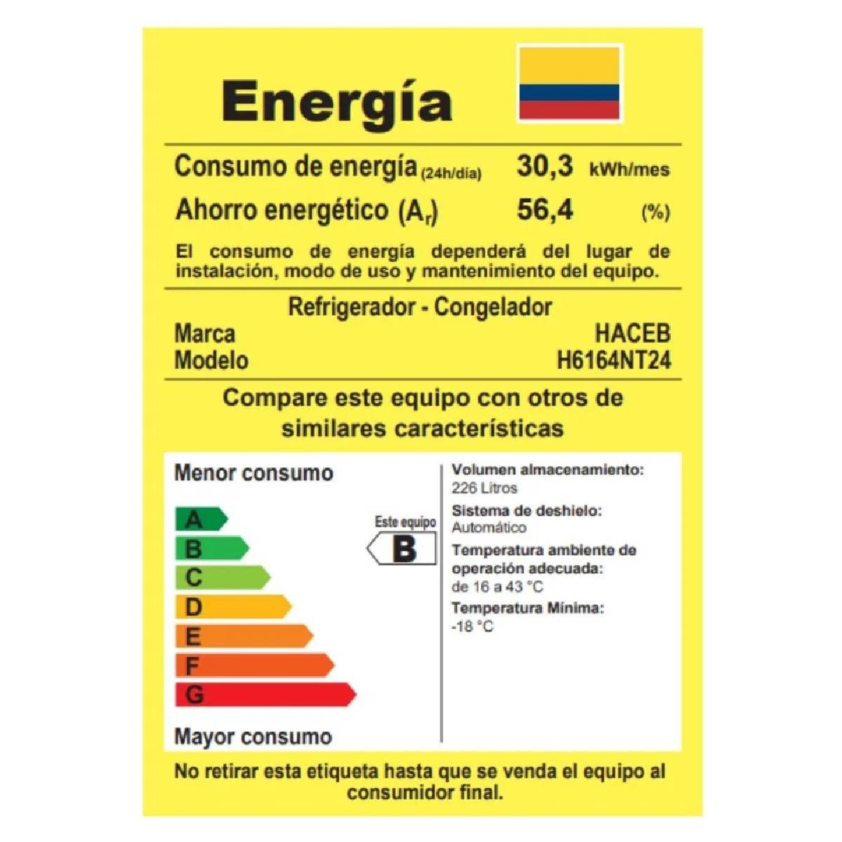 Ofrece amplio espacio interior, iluminación LED de alta cobertura y un fabricador de hielo con cubos 60% más grandes. Con 243 litros brutos / 226 litros netos, su distribución modular permite organizar mejor tus alimentos. Haceb respalda esta referencia con 10 años de garantía en el compresor.